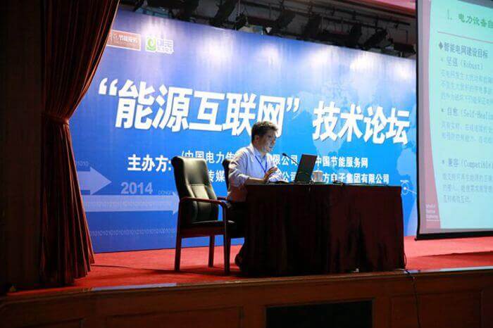 9月20日,我公司在烟台市举办“2014能源互联网技术论坛”。中国电力科学研究院名誉院长、中国科学院院士周孝信,浙江大学常务副校长、英国皇家工程院院士宋永华,西安交通大学教授张保会,中国电力科学研究院博士刘广一,华中科技大学教授林湘宁等电力行业的专家和来自全国的百余名电力行业人士出席本次会议。